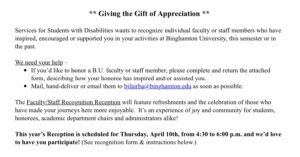 In April of that Spring, I was not only receiving assistance through the disabilities office on campus, I was also